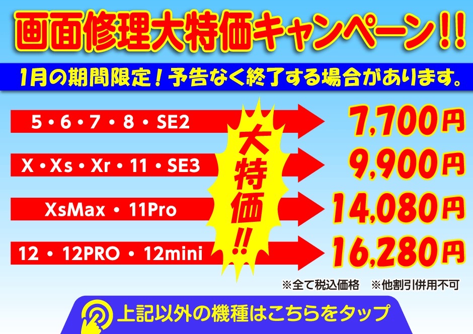 当店では即日対応で部品交換による修理なので、データはそのまま、価格もアップルケアの保証が無ければ3・4万かかりますが、当店ならその3分の1・4分の1で修理をする事が出来ます。