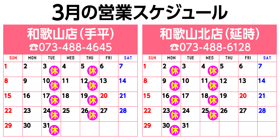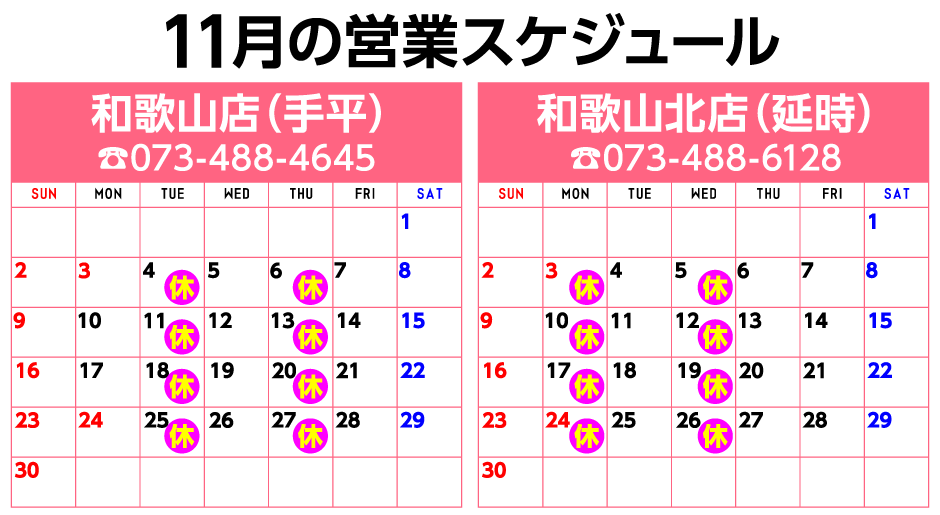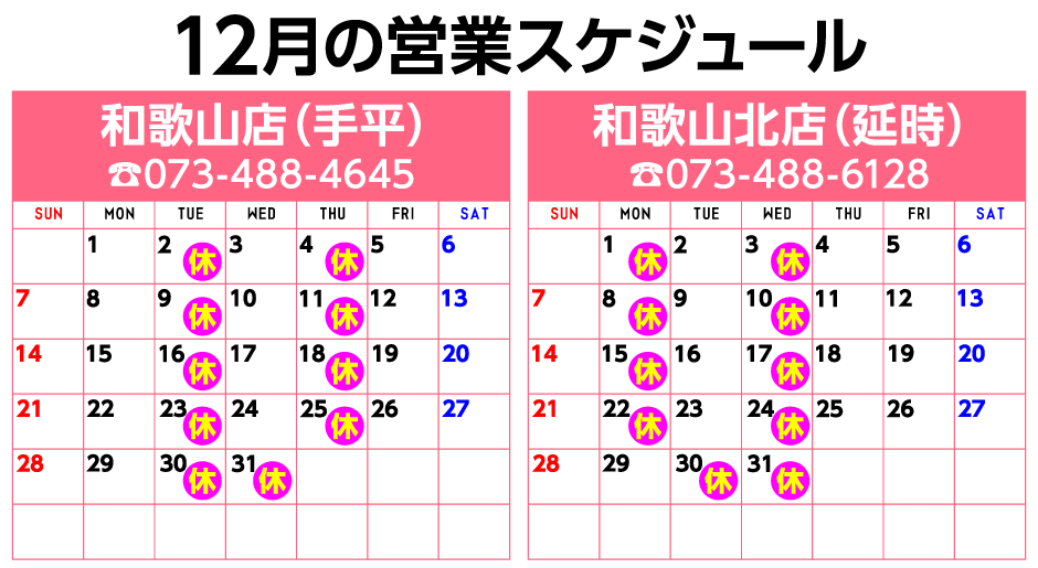 南は新宮から、御坊、田辺、有田、海南、北は岸和田、貝塚、泉佐野、阪南からと、多くの方にご利用、ご来店頂いております。